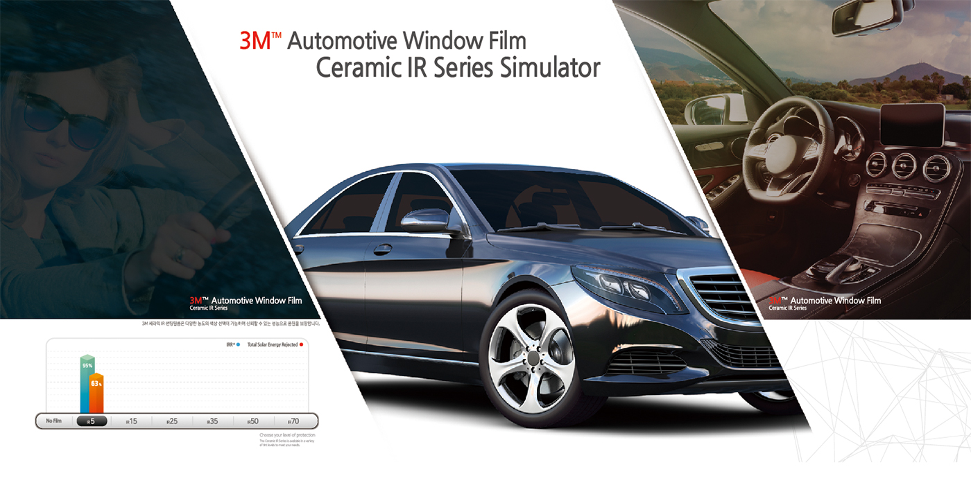 3M 세라믹 IR 썬팅필름은 다양한 농도의 색상 선택이 가능하며 신뢰할 수 있는 성능으로 품질을 보장합니다.