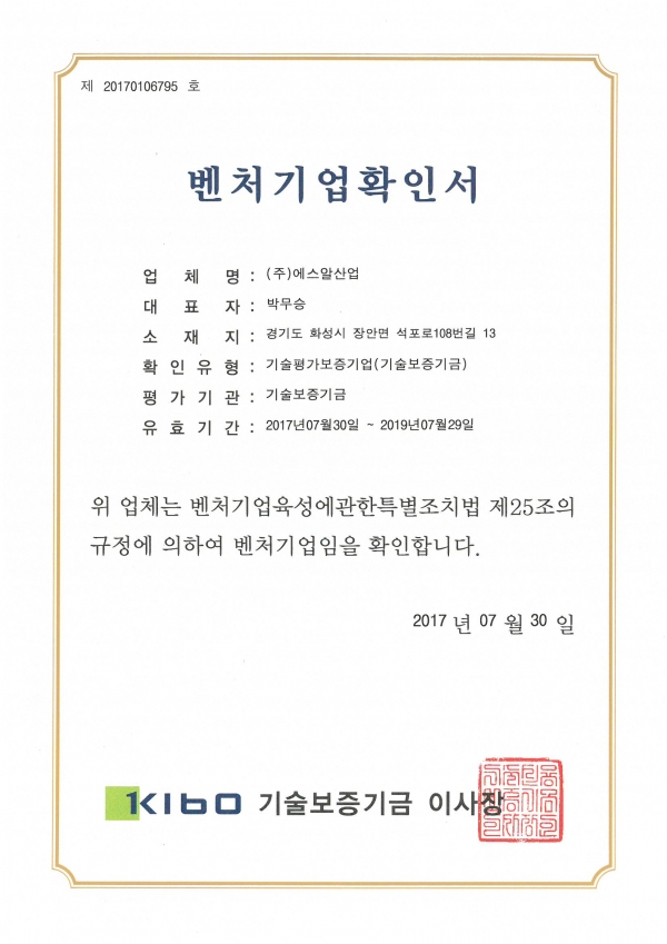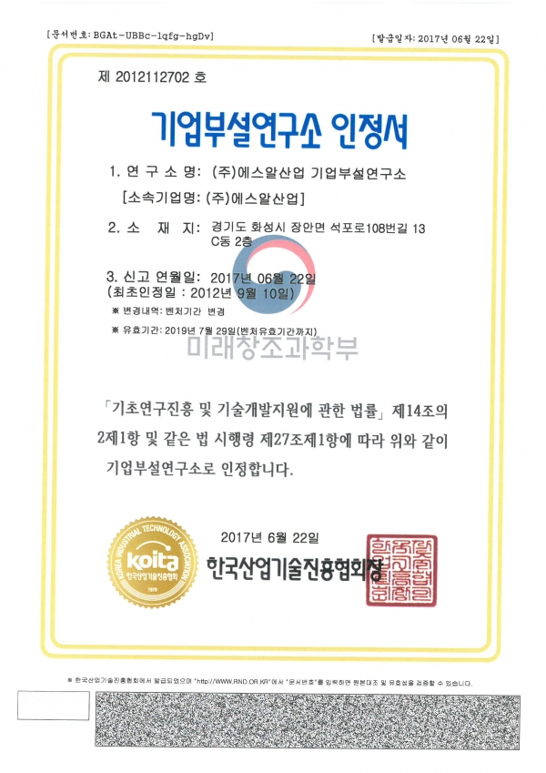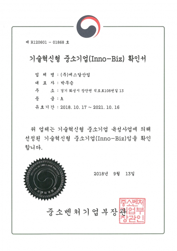 Home > 에스알산업 > 인증서