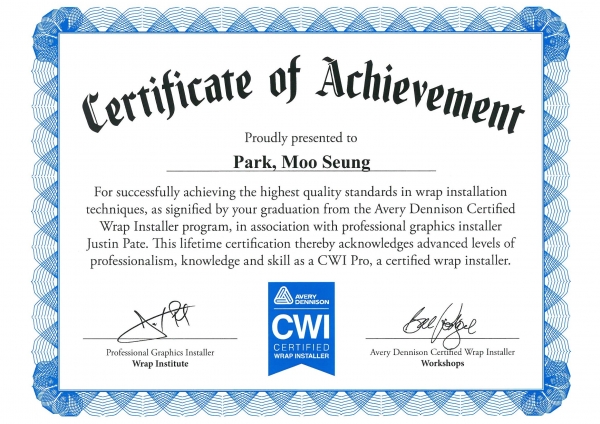 AVERY CWI 전문 시공자 인증서 CERTIFICATE OF ACHI...